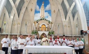 No dia 13/12/2025, a nossa Paróquia e Santuário Nossa Senhora de Fátima viveu um momento de profunda comunhão e alegria. Nossos coroinhas e acólitos marcaram presença de forma expressiva na Missa dos Coroinhas do Setor São José, realizada na Paróquia São João Batista. O encontro reuniu centenas de crianças e jovens que dedicam parte de suas vidas ao serviço do altar em diversas paróquias da nossa região, fortalecendo a unidade da nossa Igreja e o sentido de pertença comunitária. A Santa Missa foi presidida pelo Vigário Episcopal da Região Metropolitana São José, Padre Bruno Moreira Rodrigues. Em sua homilia, o Vigário destacou a importância do zelo litúrgico e o belo testemunho que estas crianças e jovens dão à sociedade ao escolherem servir a Cristo e à Igreja. Um Testemunho de Unidade Ver o presbitério repleto de túnicas vermelhas e brancas foi um sinal visível da vitalidade da nossa Igreja. Para os coroinhas do nosso Santuário, foi uma oportunidade não apenas de celebrar a Eucaristia, mas de trocar experiências e fazer novas amizades com outros grupos do Setor São José, reconhecendo que fazem parte de uma família muito maior. A participação no evento reflete o empenho da nossa coordenação e o