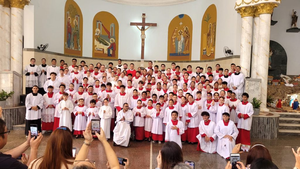 Ver o presbitério repleto de túnicas vermelhas e brancas foi um sinal visível da vitalidade da nossa Igreja. Para os coroinhas do nosso Santuário, foi uma oportunidade não apenas de celebrar a Eucaristia, mas de trocar experiências e fazer novas amizades com outros grupos do Setor São José, reconhecendo que fazem parte de uma família muito maior.